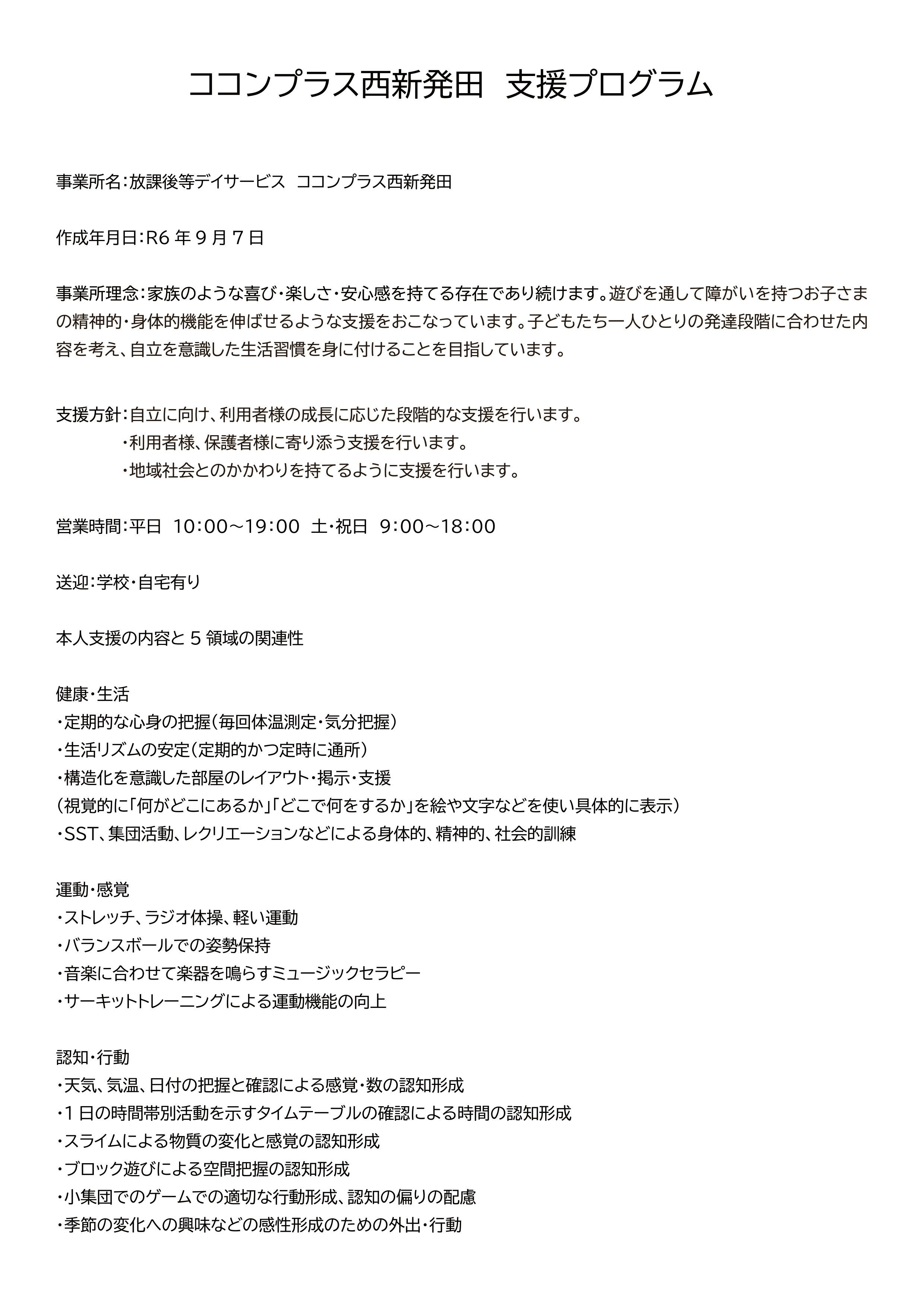 ココンプラス西新発田 支援プログラムのご案内