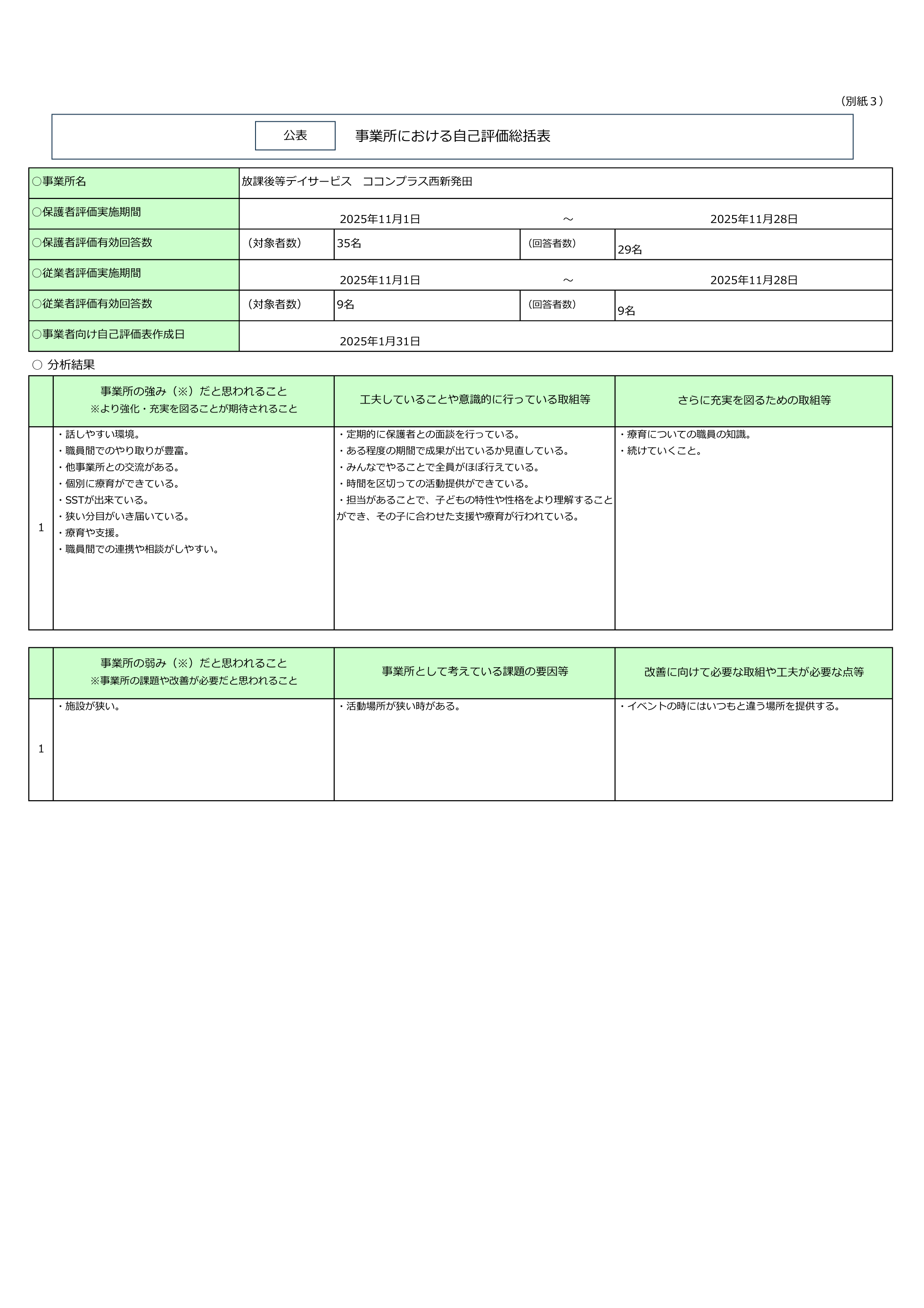 事業所における自己評価総括表